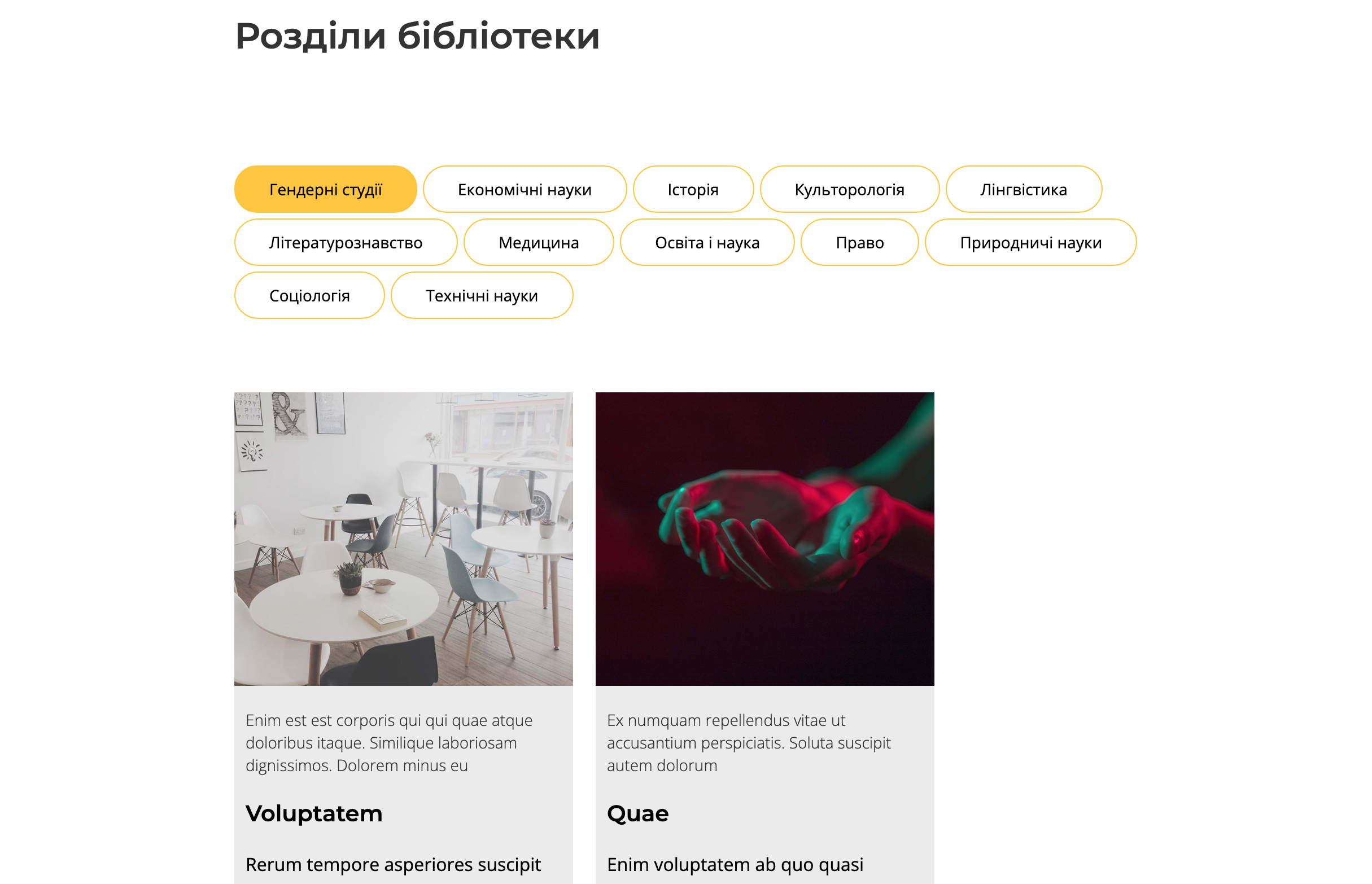 Project library: Develop a library section with twelve distinct categories to showcase the organization's various charitable projects.